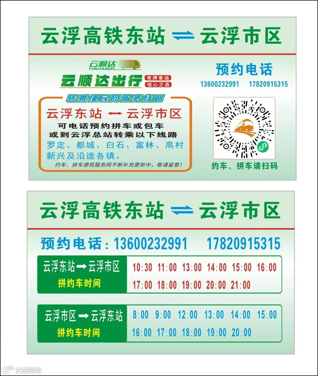 🚌 云浮东服务点现已开通云浮东往返云城区、罗定、新兴、郁南的拼/约车服务,也就是说从云浮东可以直达屋企门口啦~