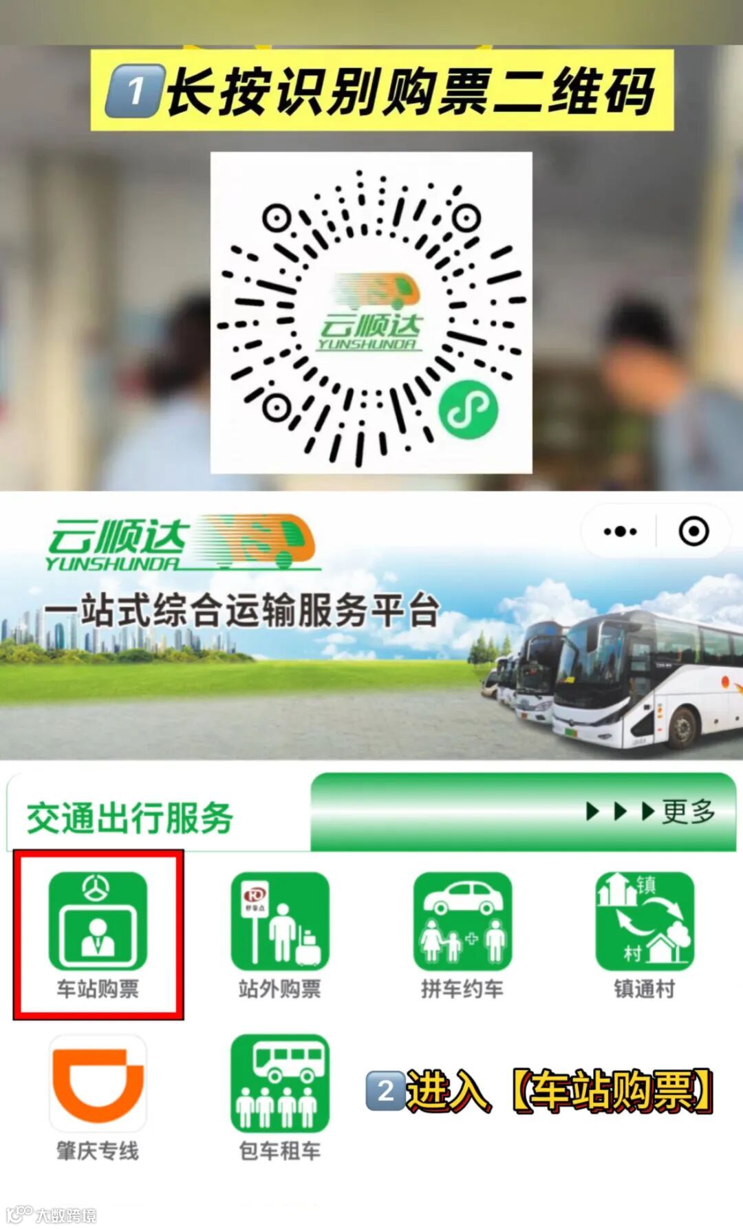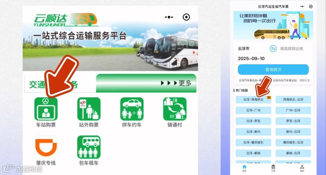 3、通过微信小程序[云顺达]购票: