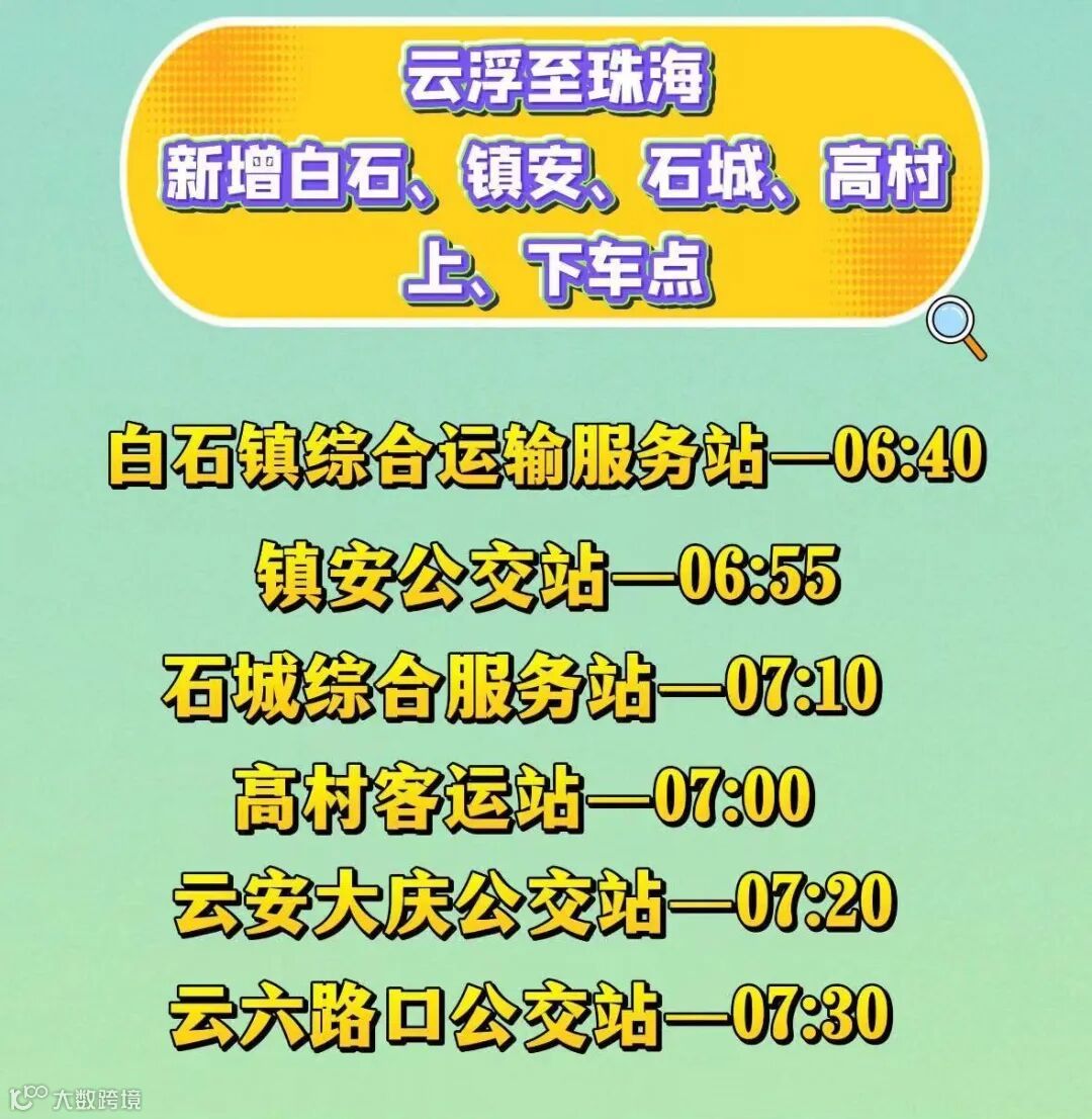 为满足农村群众对安全、经济、便捷出行的需求,云浮汽车客运站直达珠海的发财专线新增白石、镇安、石城、高村上、下车点~切实解决“城际出行成本高、中转耗时长”等问题!