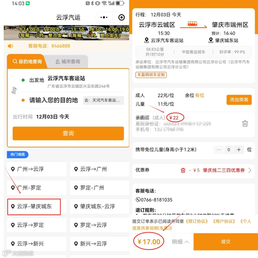 肇庆—云浮请关注“肇庆交运公众号”均可进行线上购票。