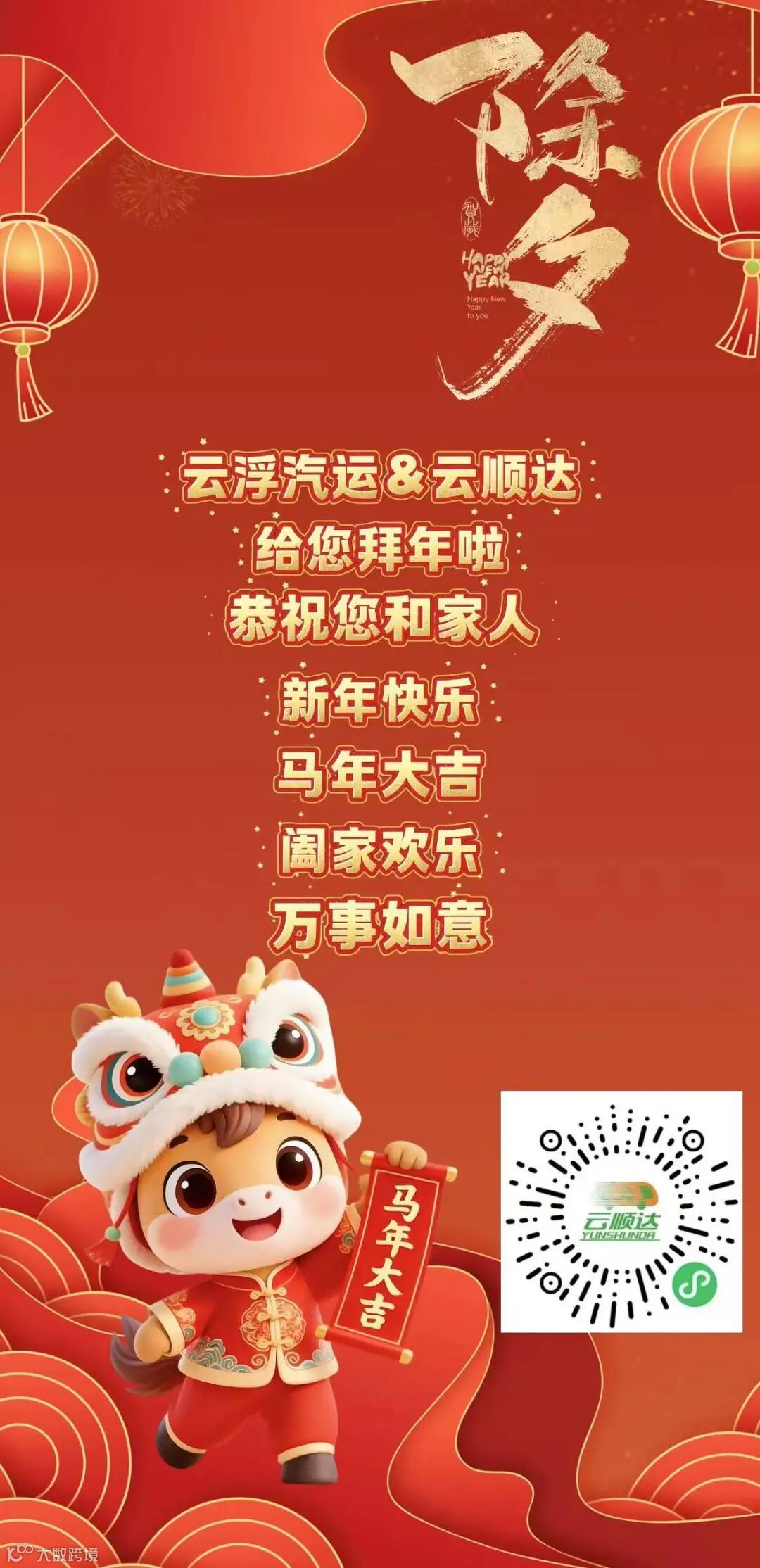 值此辞旧迎新之际,云浮市汽车运输集团有限公司向全市父老乡亲、广大乘客朋友,致以最温暖的除夕问候和新春祝福!