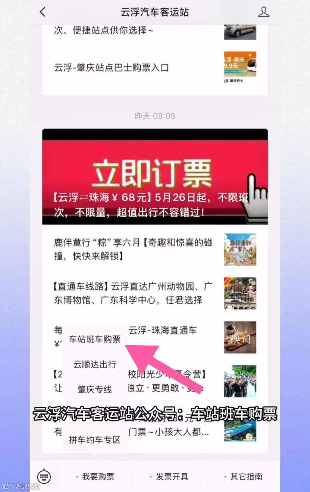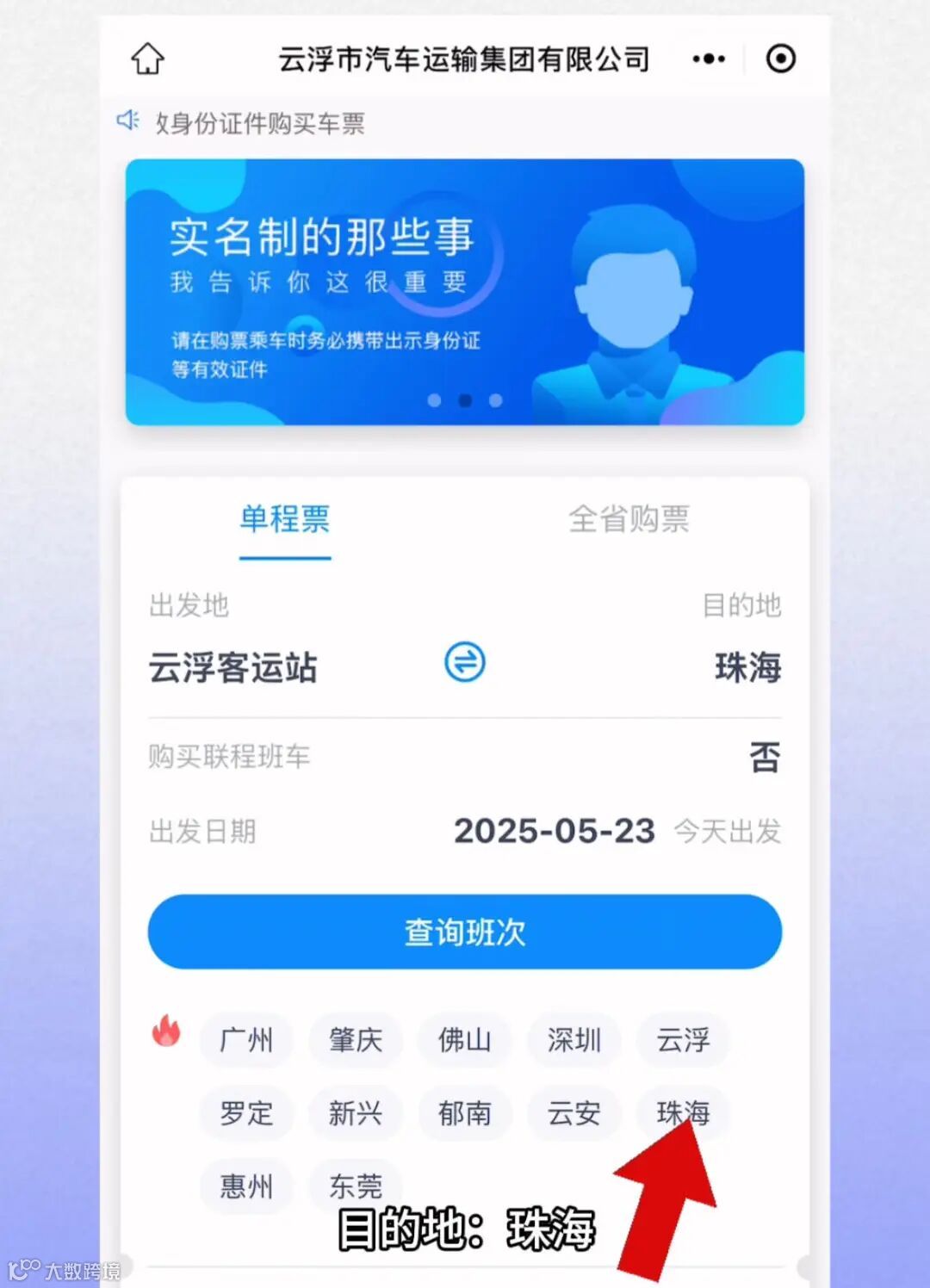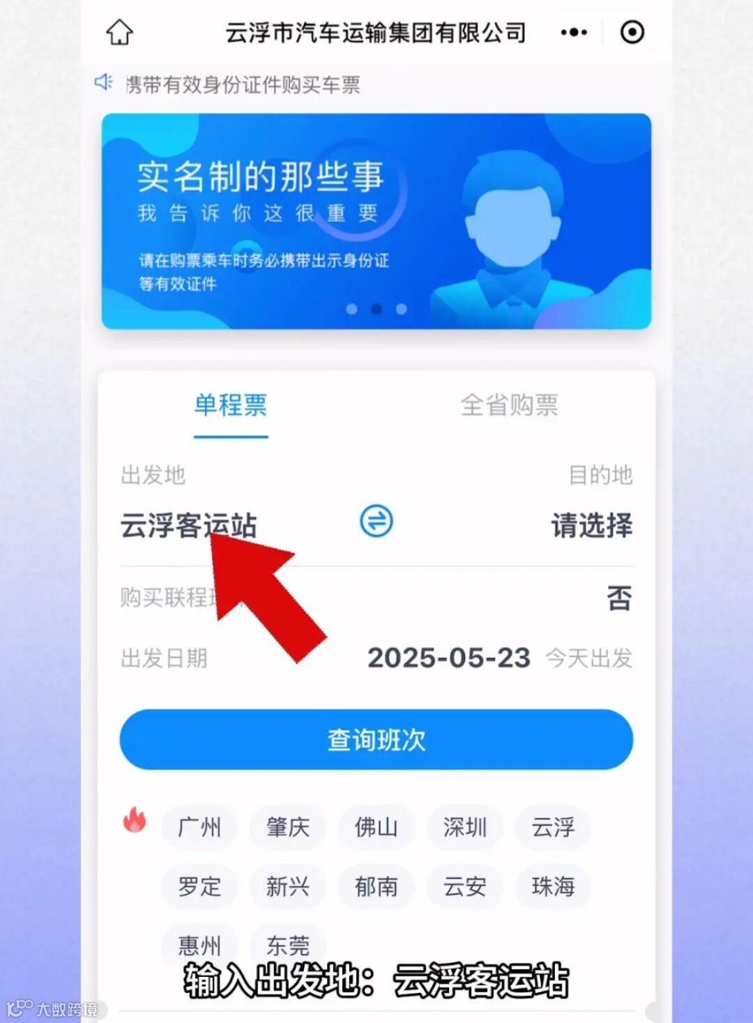 1、官方微信公众号【云浮汽车客运站】-【车站班车购票】