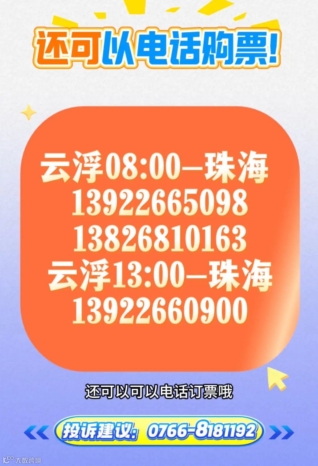 云浮08:00-珠海 13922665098、13826810163、