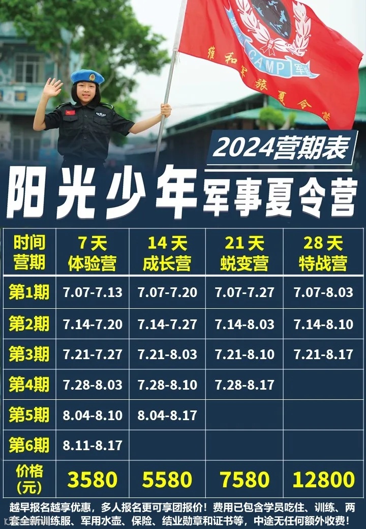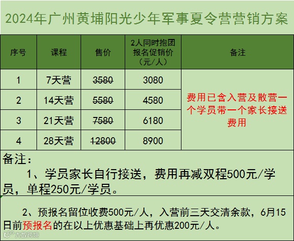 名额有限:家长确定报名需支付500元定金,剩余学费于开营前3天结清余款;6月15日前预报名的在以上优惠基础上再优惠200元/人。
