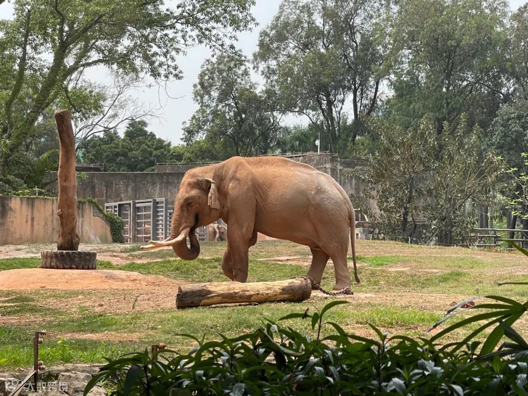大象喜欢到处闲逛,有时躲在屋子里,有时跑出来吃草,广州多变的天气正和它们心意。