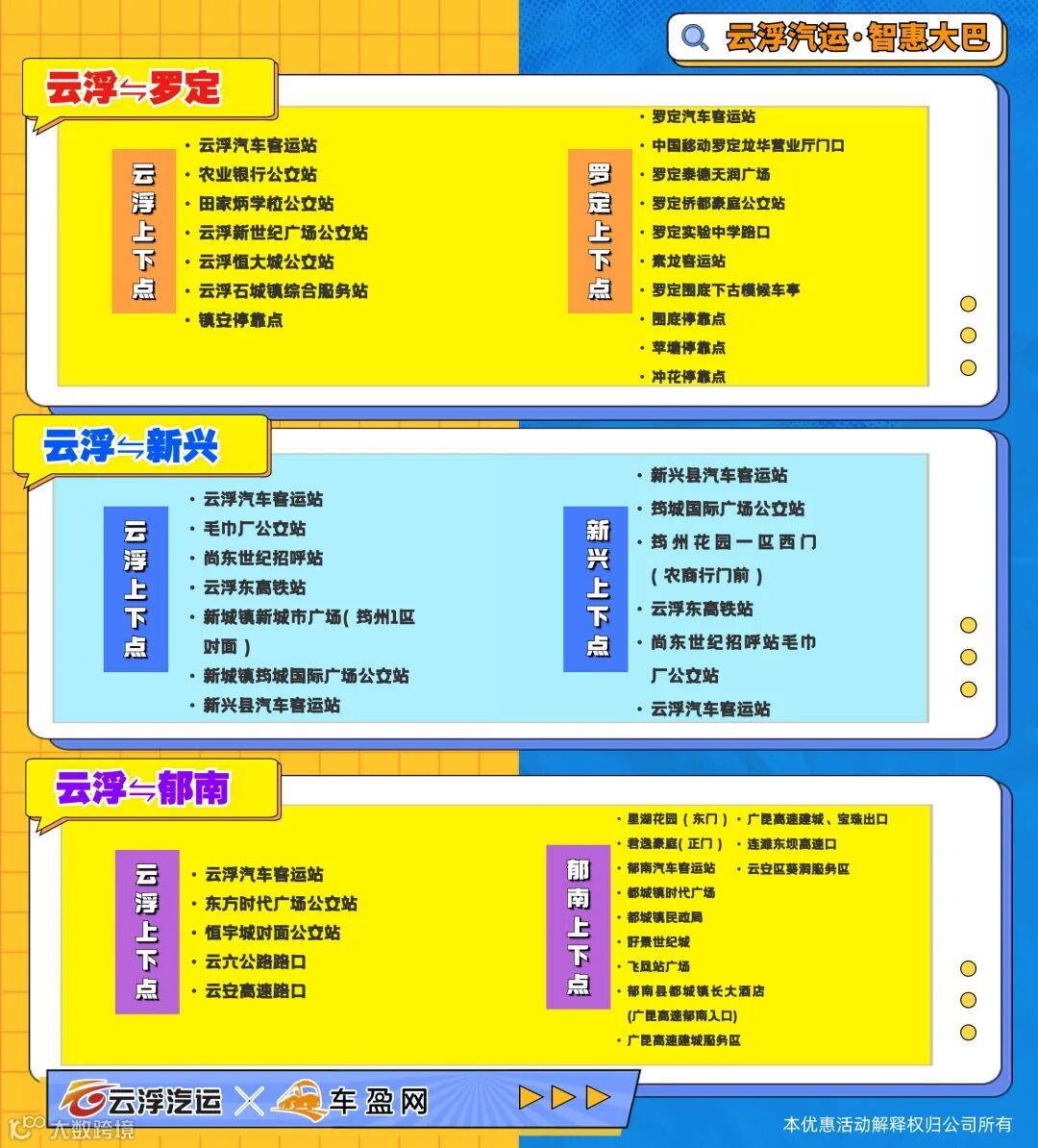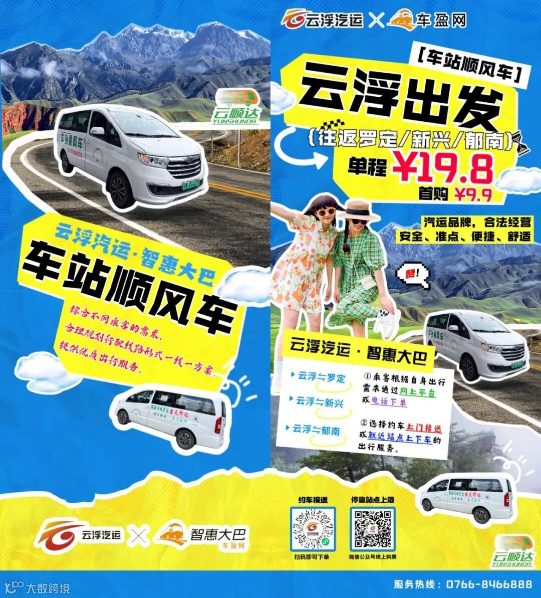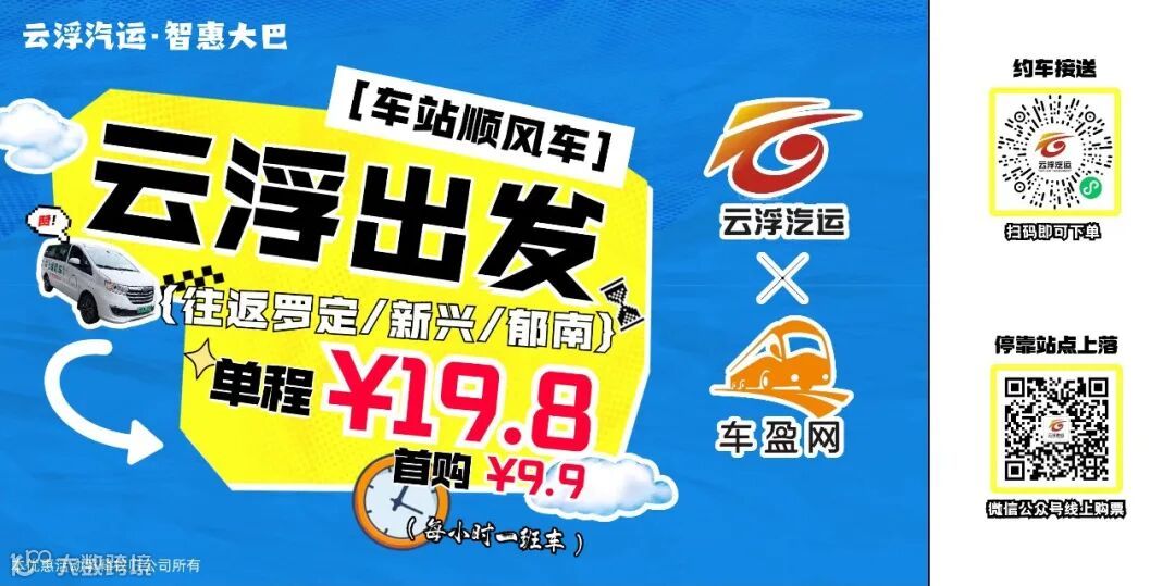 现云浮市金马农村综合运输服务运营中心升级优化云浮⇋罗定、云浮⇋新兴、云浮⇋郁南3条定制客运专线,采用豪华商务车型,市区全范围上门接送,新用户仅需9.9元,老用户活动期内购票乘车19.8元。