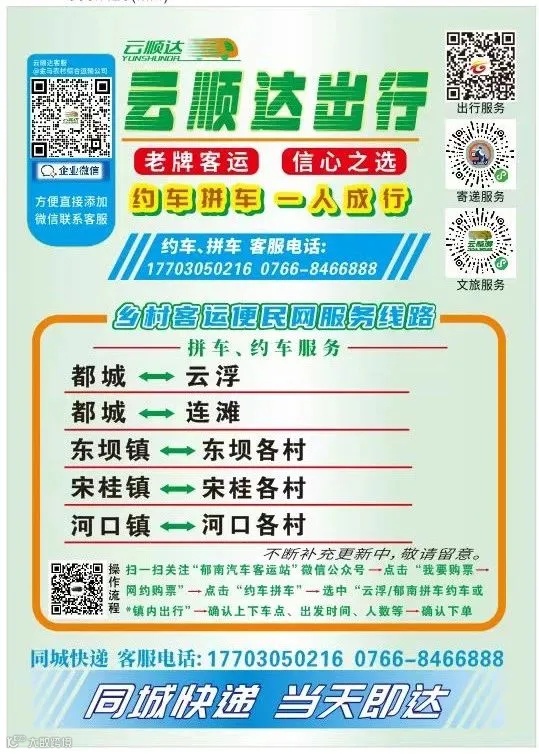 【车站约拼车】云城区域内约车、云城区往返云浮东高铁站、罗定、新兴、都城、白石、高村、富林周边乡镇约车已开通!