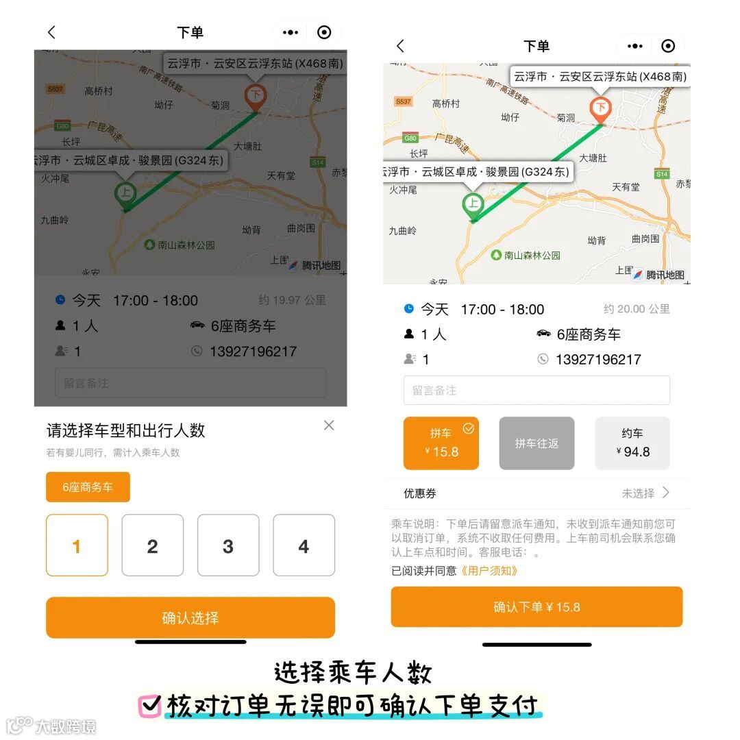 ②而市区出发去云浮东也是可以提前致电客服热线13927189808、8466888,根据你的出发时间以及乘车人数预约车辆,下单成功后,司机准时、准点到达出发地接送。