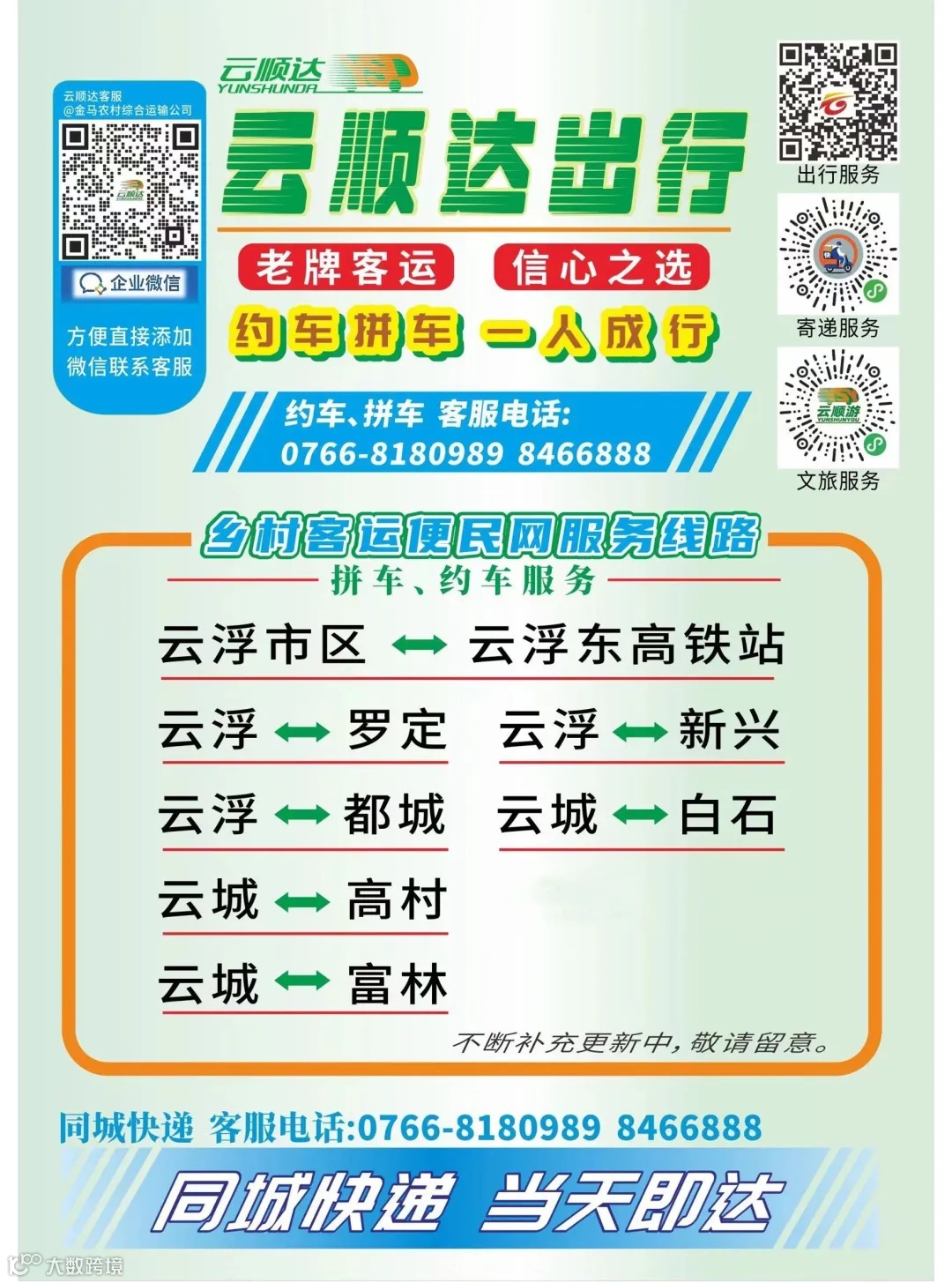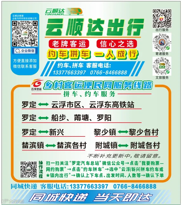 【一键约车、一人成行】云城区域内约车、云城区往返云浮东高铁站、罗定、新兴、都城、白石、高村、富林周边乡镇约车已开通!