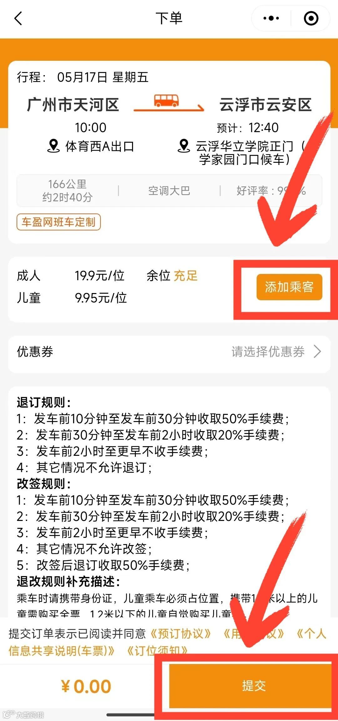 ⑤点击“添加乘客”