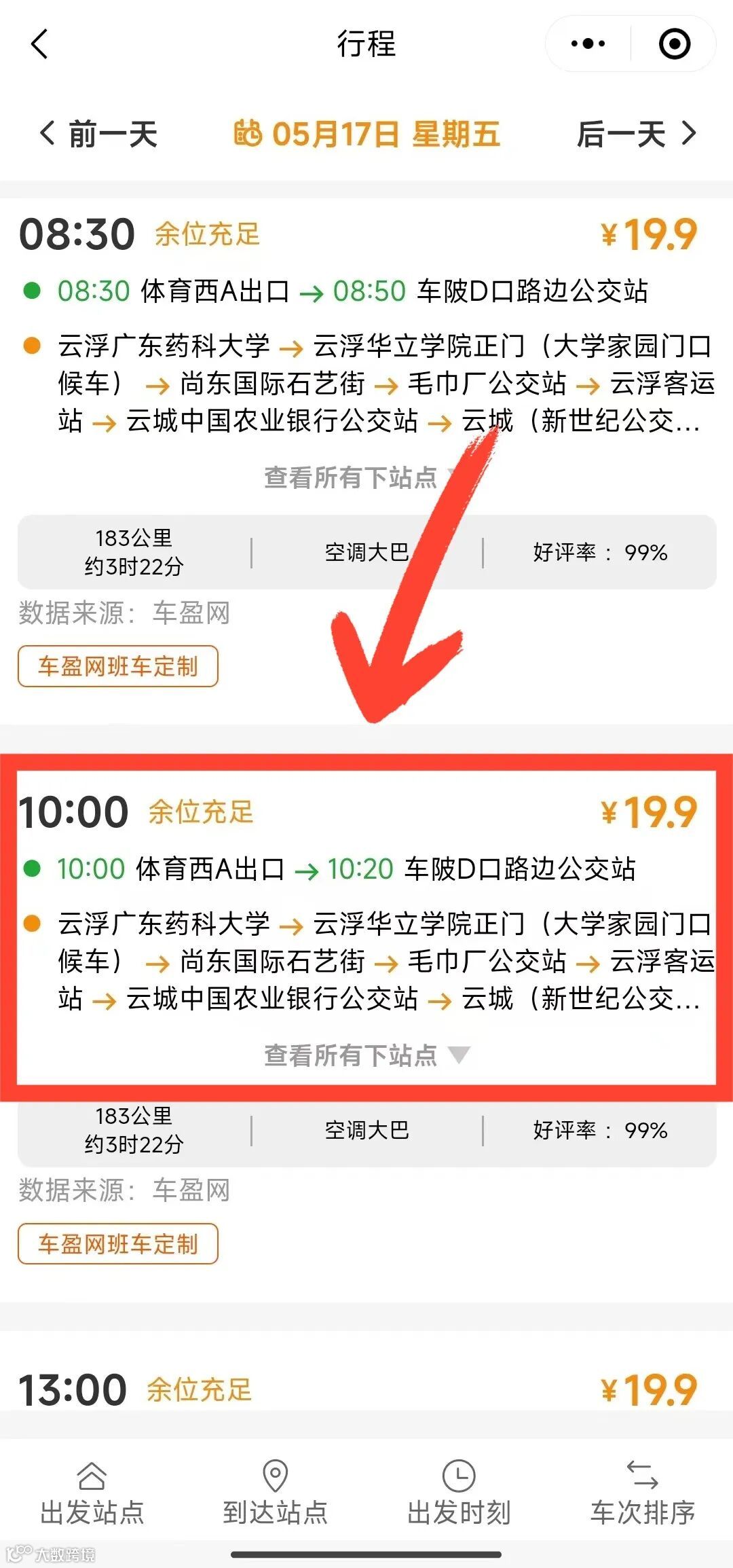 ④选择上下车点