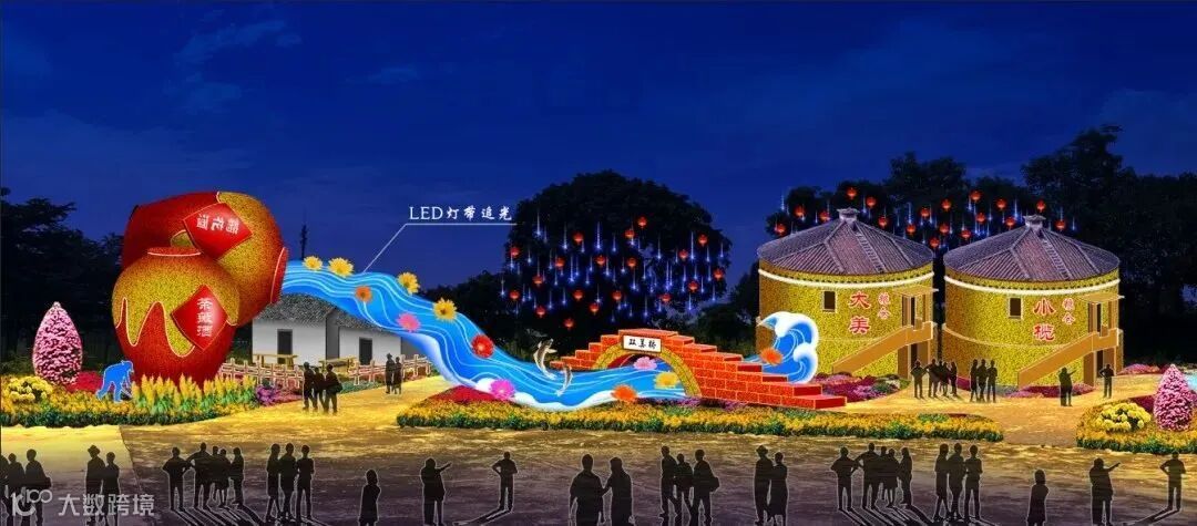 菊艺造景区设大美小榄、乡村振兴、文明城市、绿色家园四大板块,共21组菊花主题造景。