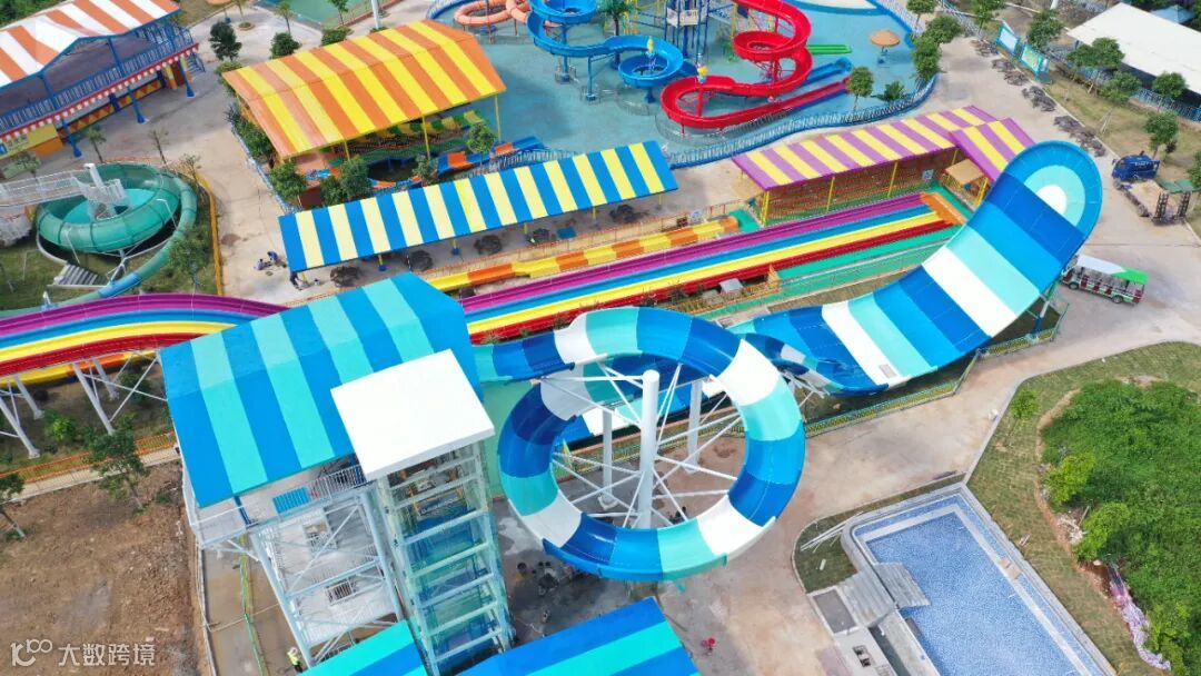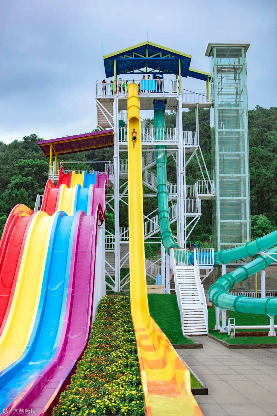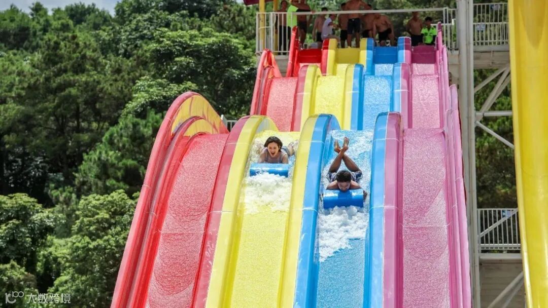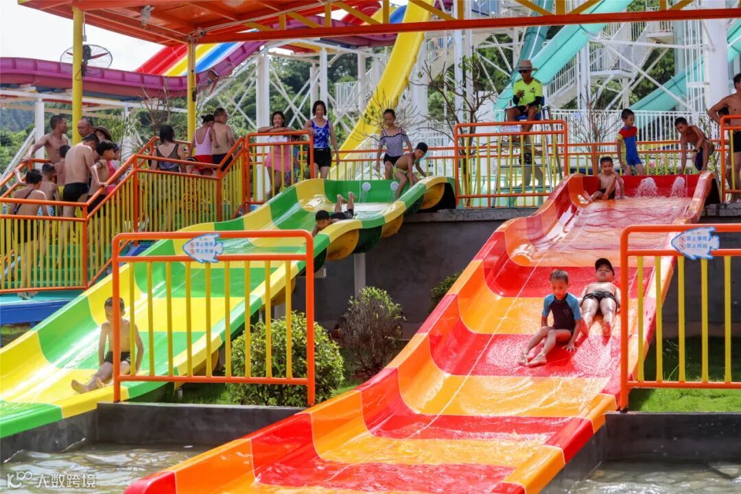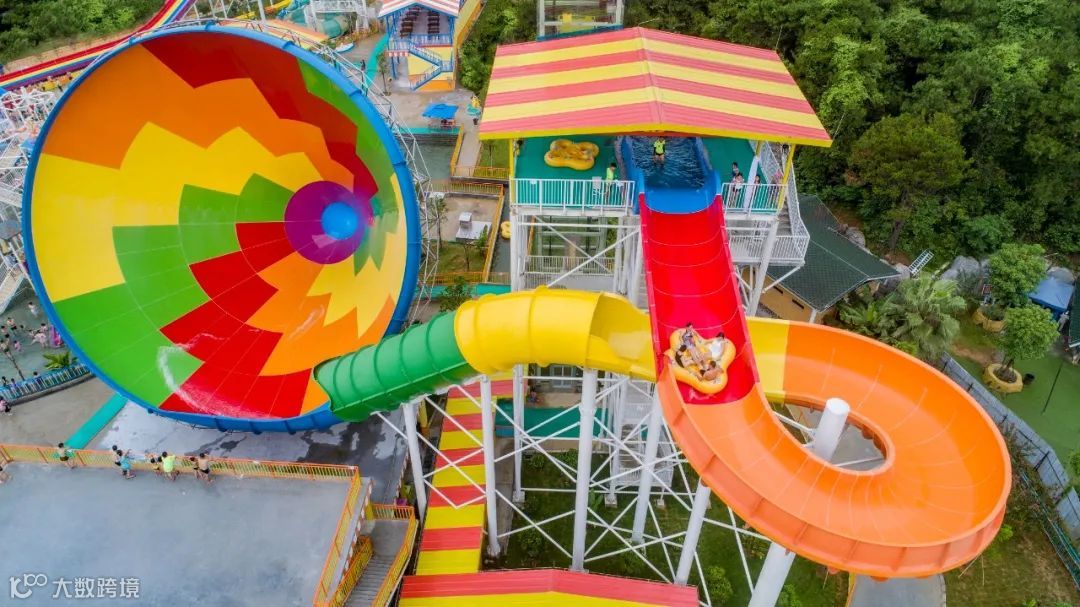 五彩斑斓的滑道,像是彩虹从天边蔓延下来