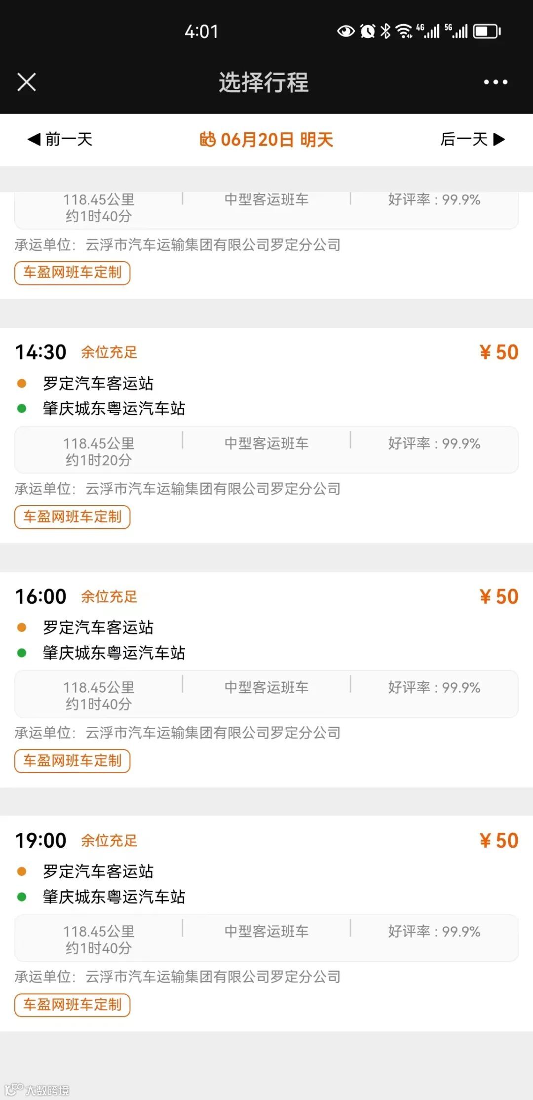 双程90元为肇庆城东粤运汽车站往返罗定汽车总站套票