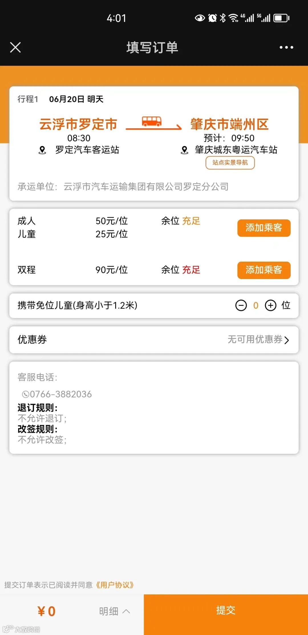 选择合适的出发时间 添加乘客、提交、支付即可