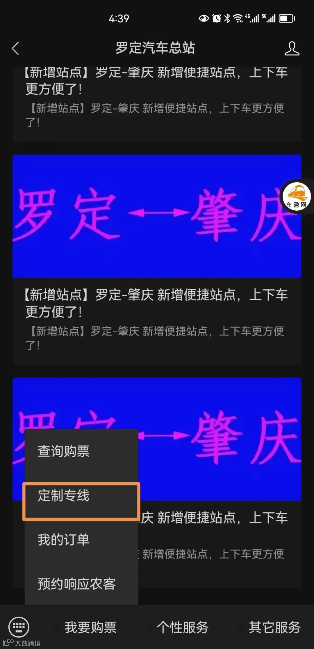 点我要购票、定制专线 选择上下车地点、出行日期