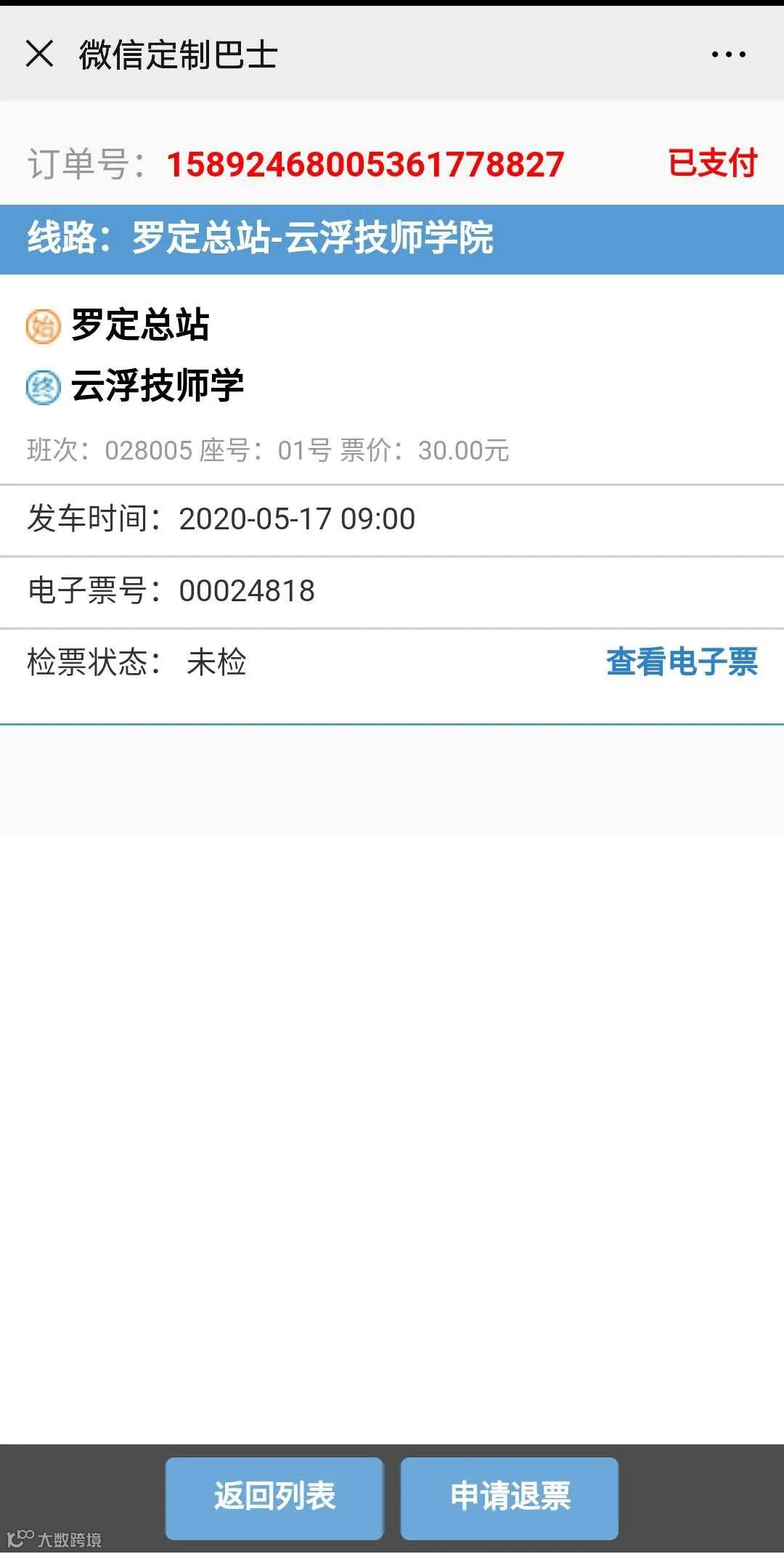 3、选择你所购买的车次,点击右下角【查看详情】