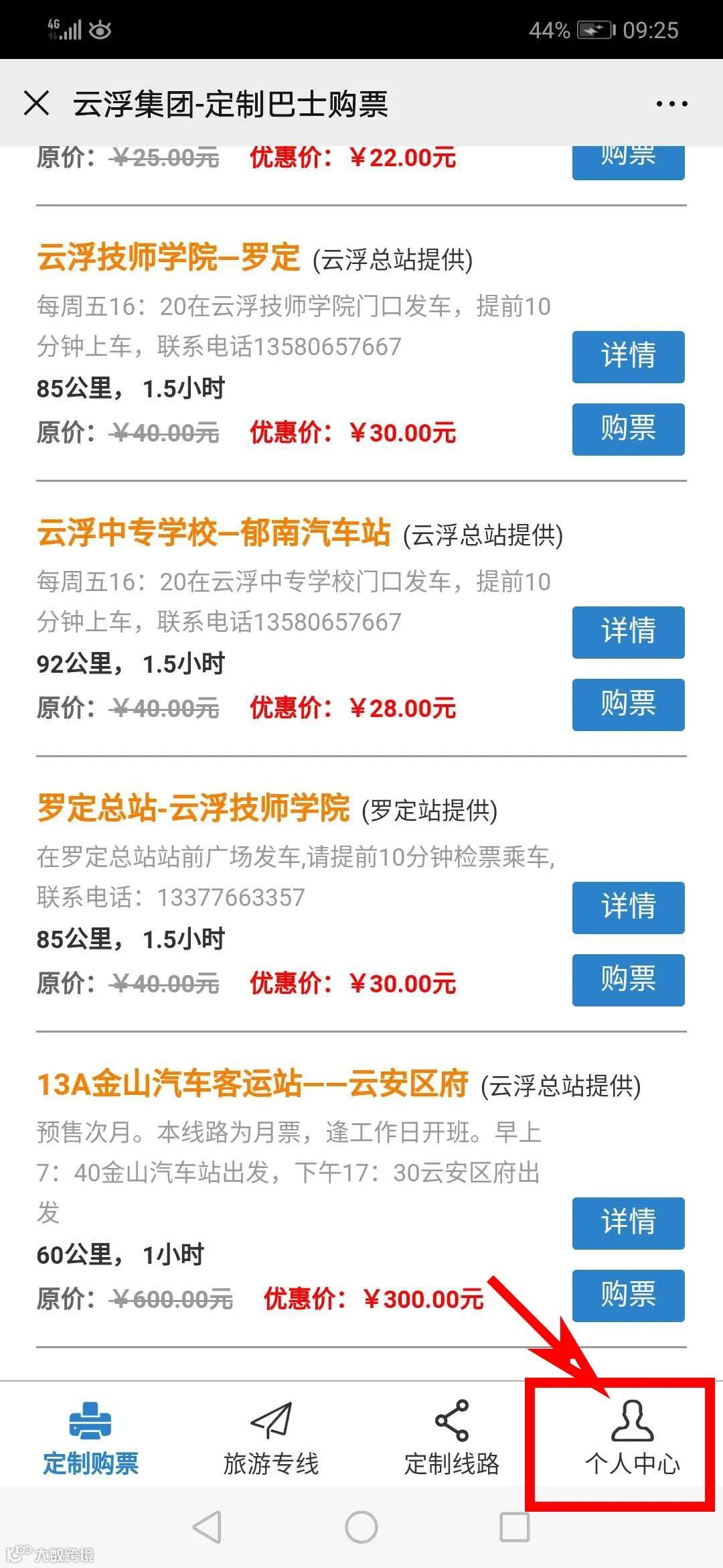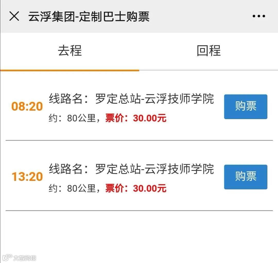 2、根据各自需要乘坐的班车选择【购票】