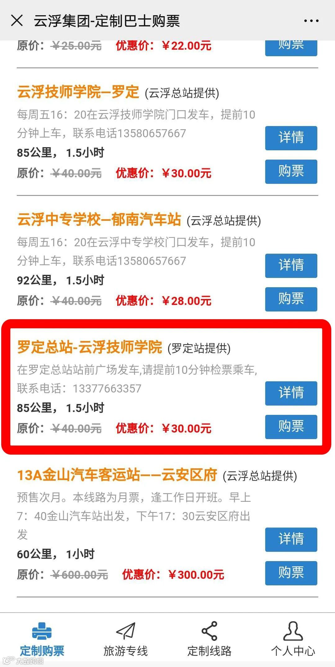 云浮技师学院--罗定总站 30元/人
