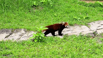 小熊猫区,小熊猫们格外配合饲养员的安排,向游客展示“吃喝卖萌”的绝技。