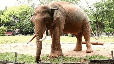 大象喜欢到处闲逛,有时躲在屋子里,有时跑出来吃草,广州多变的天气正和它们心意。