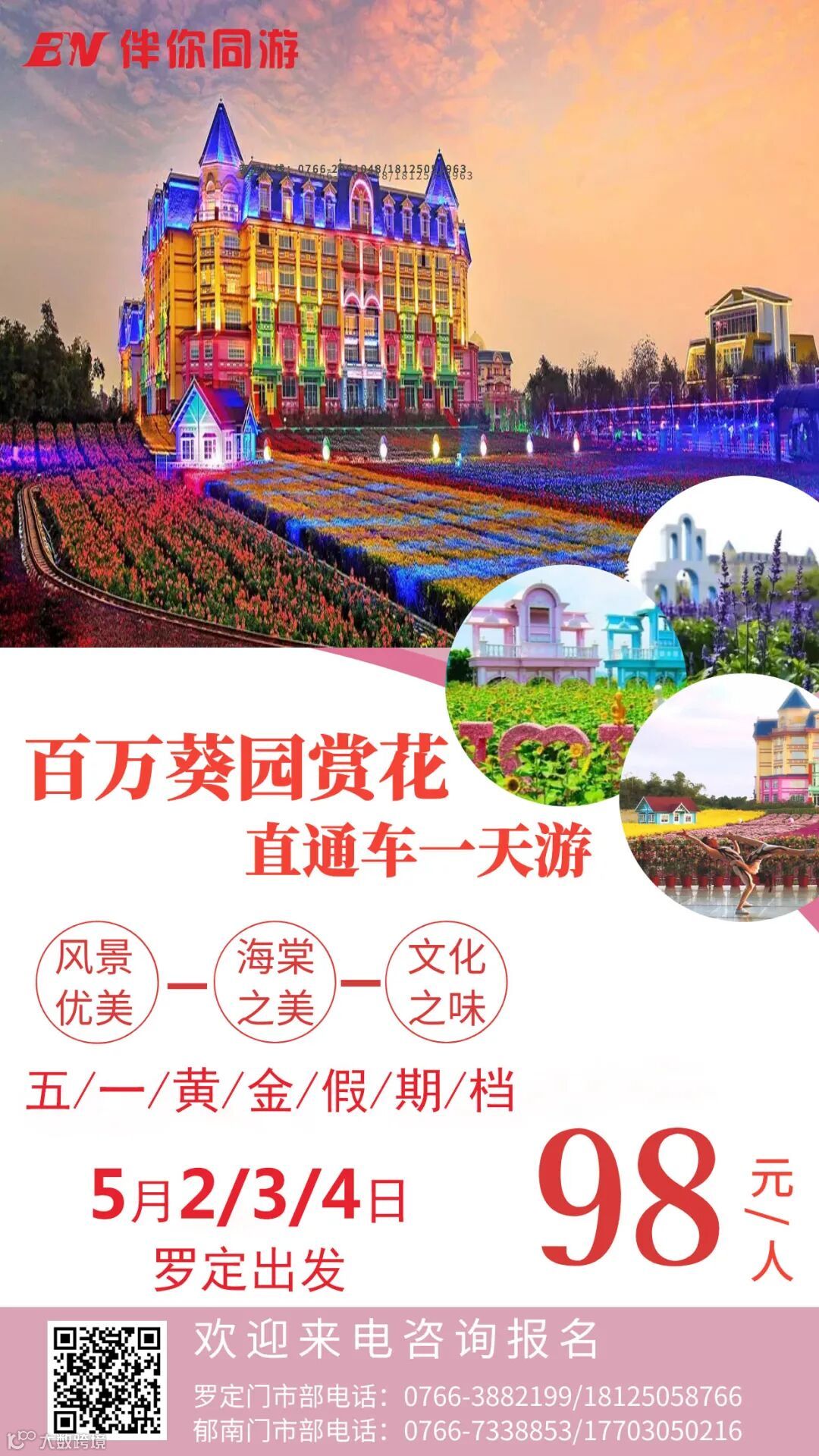 ★【¥98元景区直通车,4月22、24日第一车已满员,增加车辆还有余位】畅游番禺百万葵园百花节,全国女士全部免费入园!