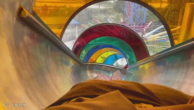 从高处呼呼滑下穿过七彩的管道