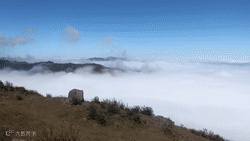 天露山的云海非常迷人,有时似万马奔腾,有时天开画图,有时薄雾如纱,穿行于云海间,有点像置身于天堂仙境。