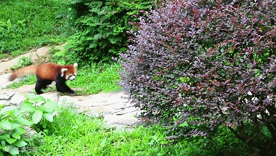 在小熊猫区,小熊猫们格外配合饲养员的安排,向游客展示“吃喝卖萌”的绝技。