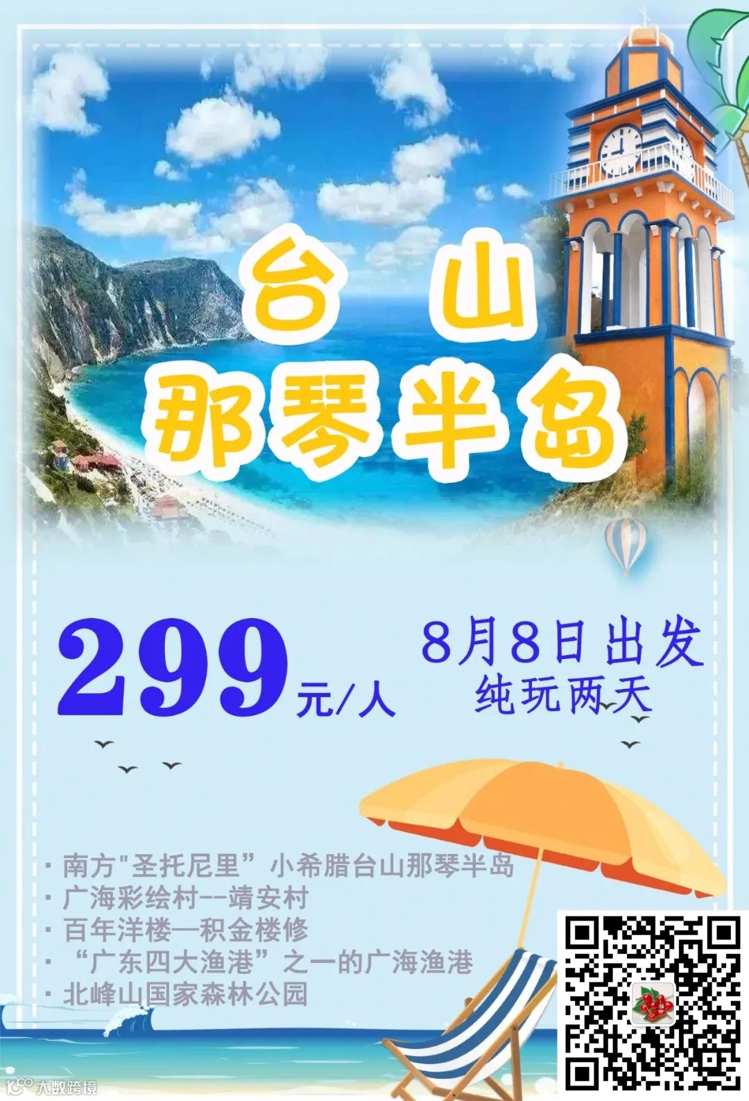 早上07:00指定地方集中,乘空调汽车前往江门台山;(行车时间约3小时)