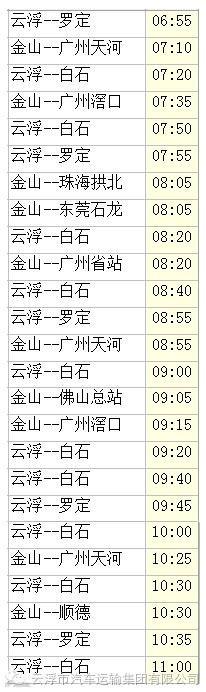 (以下线路中云浮开头的为云浮总站始发,途经金山站配客)