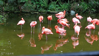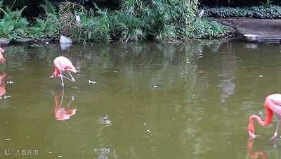 火烈鸟在动物园南门门口,一进门就能看见一群粉色的长腿模特。