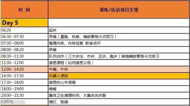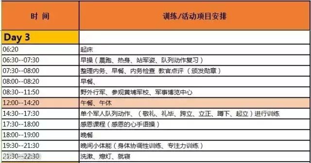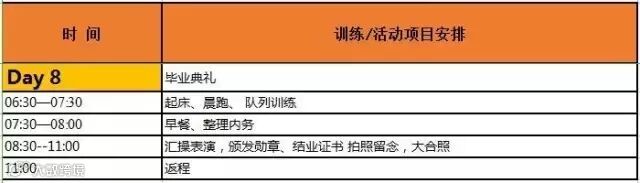 ★此课程表为8天体验营课程表,如需15天强化营、22天磨练营、29天特战营活动详情请咨询我们。