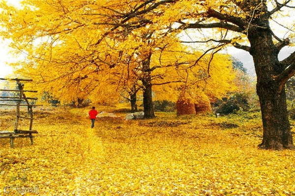 银杏树下,往往聚集了不少小孩玩耍、大人散步、老人椅座的惬意画面,这时,你可以利用镜头捕捉下来,顿时一幅温馨的照片就出来啦!