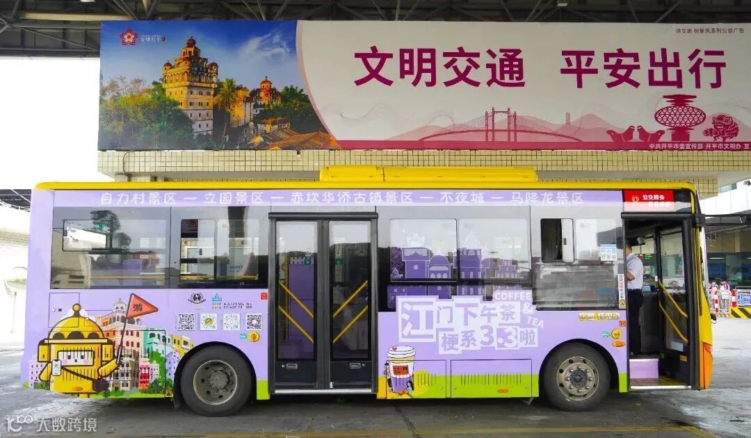专线巴士以侨乡文化为主题进行内外装饰,车身绘有碉楼、骑楼等特色元素,乘客可在旅途中沉浸式感受开平历史人文,巴士本身亦成为流动的文化名片。