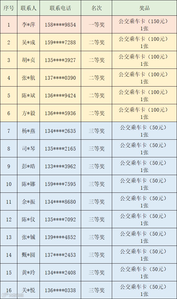 PS:个人信息仅用于核对中奖事项,不作其它用途。如有疑问请致电咨询:0750-2252393,本次活动的最终解释权归开平市国顺公共交通有限公司所有。