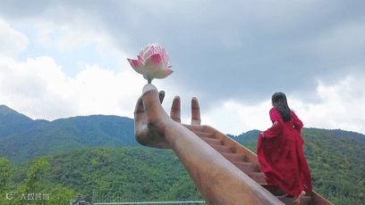 每走一步,脚下的风景就会变化一种美感,走到佛手中心,就能将天露山的层峦叠嶂尽收眼底,阳光洒下,一切显得静谧又悠远,非常壮观。