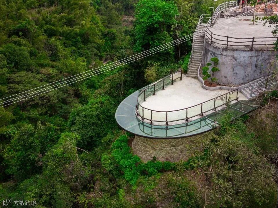 在悬空的玻璃栈道漫步