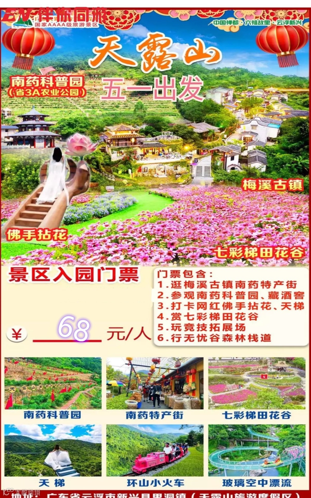 新兴出发:5月1日小长假出发¥68元天露山包车费包门票!