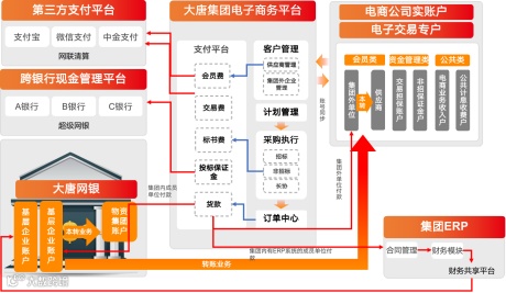电商平台于2013年开始启动建设,经过持续升级优化,已形成涵盖一个共享服务平台、三大交易模块的有机整体。其中,共享服务平台包括用户、租户统一管理中心、支付结算中心及订单管理中心等多个共享服务中心;三大交易模块即招标交易模块、非招标交易模块、电子超市交易模块;三大交易模块通过共享服务、统一门户和登陆,融合为一个有机整体。同时,电商平台通过与计划、法务、业财一体化、财务共享平台、物流等大唐集团内外部系统对接,将基础数据共享,完成业务数据实时交互,实现了全流程一体化电子交易;移动扫码签章、异地分散开评标、电子合同、物流在线、在线支付、互联网金融等一系列互联网创新方案解决了企业级供应链电子商务发展的诸多难点问题,营造了更加公平、公正、透明、便捷、互利共赢的交易环境,实现了管控效率、经济效益和社会效益的提升。