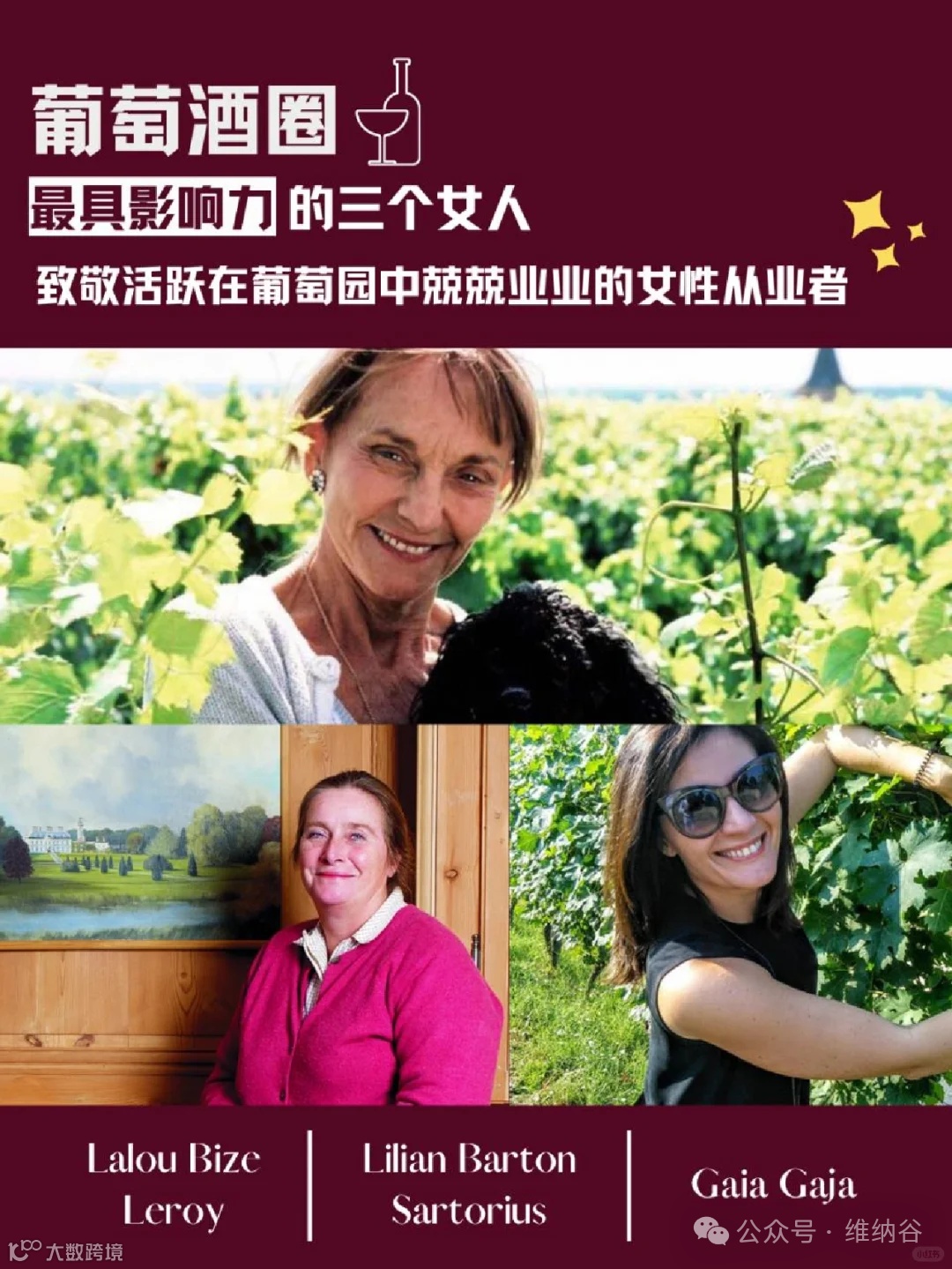 跟随时代的发展,越来越多才华洋溢的女性在葡萄酒界崭露头脚,不局限于营销或技术方面。正如巴尔扎克所言,一个有思想的女人是一个力量无边的人。今天就为大家介绍三位葡萄酒界叱咤风云不让须眉的女当家们,为她们在葡萄园中取得的傲人成绩而自豪!
