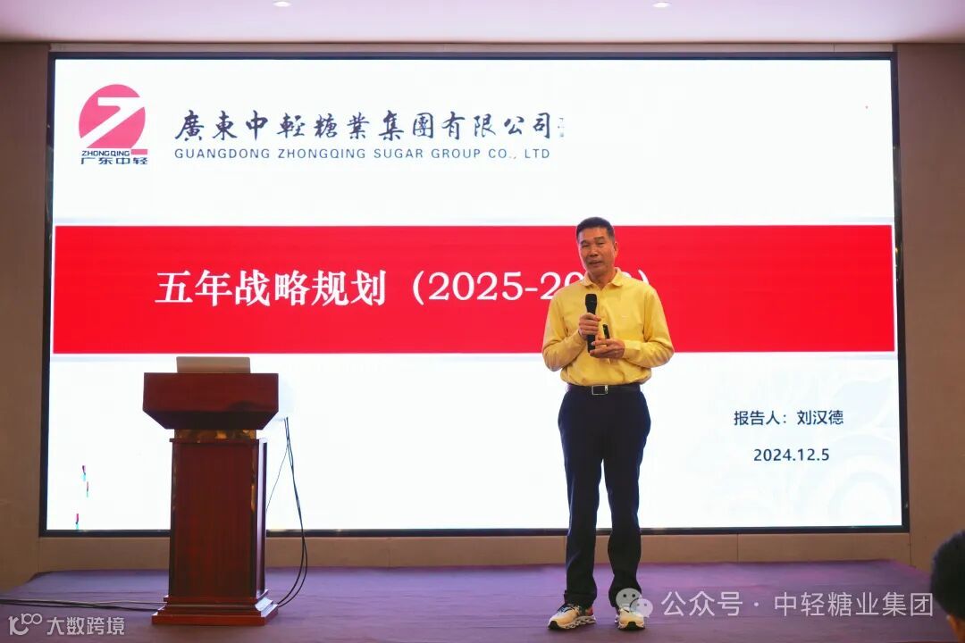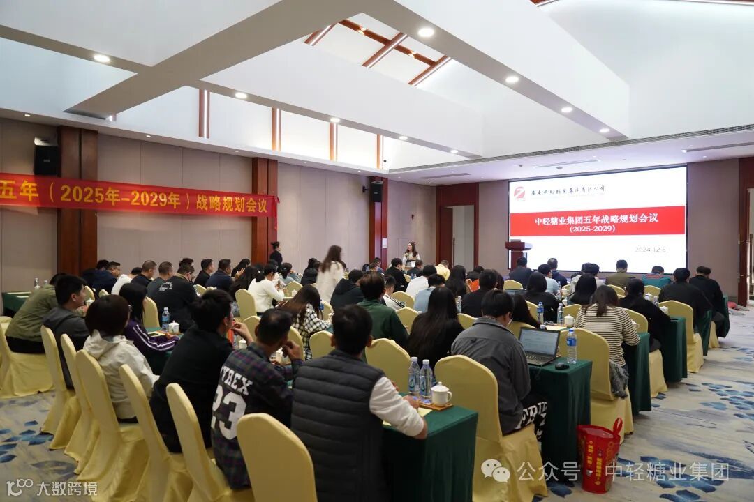 2024年12月5日,中轻糖业集团在清远英德天鹅湖酒店会议中心隆重召开了五年(2025-2029)战略规划会议。此次会议由集团总裁办负责人张贞主持,集团高管、各部门负责人及全体员工欢聚一堂,共同见证并庆祝集团未来五年的宏伟蓝图正式揭晓。