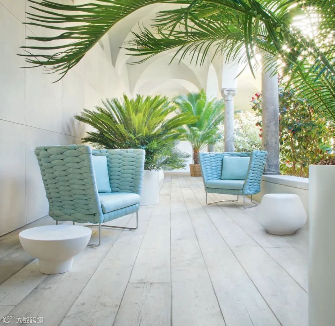 作为户外家具,功能性首当其冲,材质的耐用度和舒适度非常重要。Paola Lenti新透的结构,是高新技术运用于材质后所达到的最佳效果,电镀法加工和不锈钢漆艺,让它能经受住户外的曝晒和雨淋;布料经过特殊处理,可以防水及防止因紫外光侵蚀而逊色,要美还要无惧风吹雨淋。