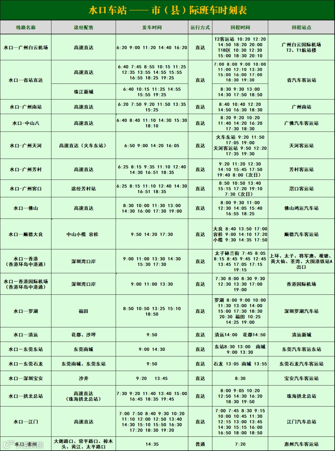 义祠公司6月份班车时刻表