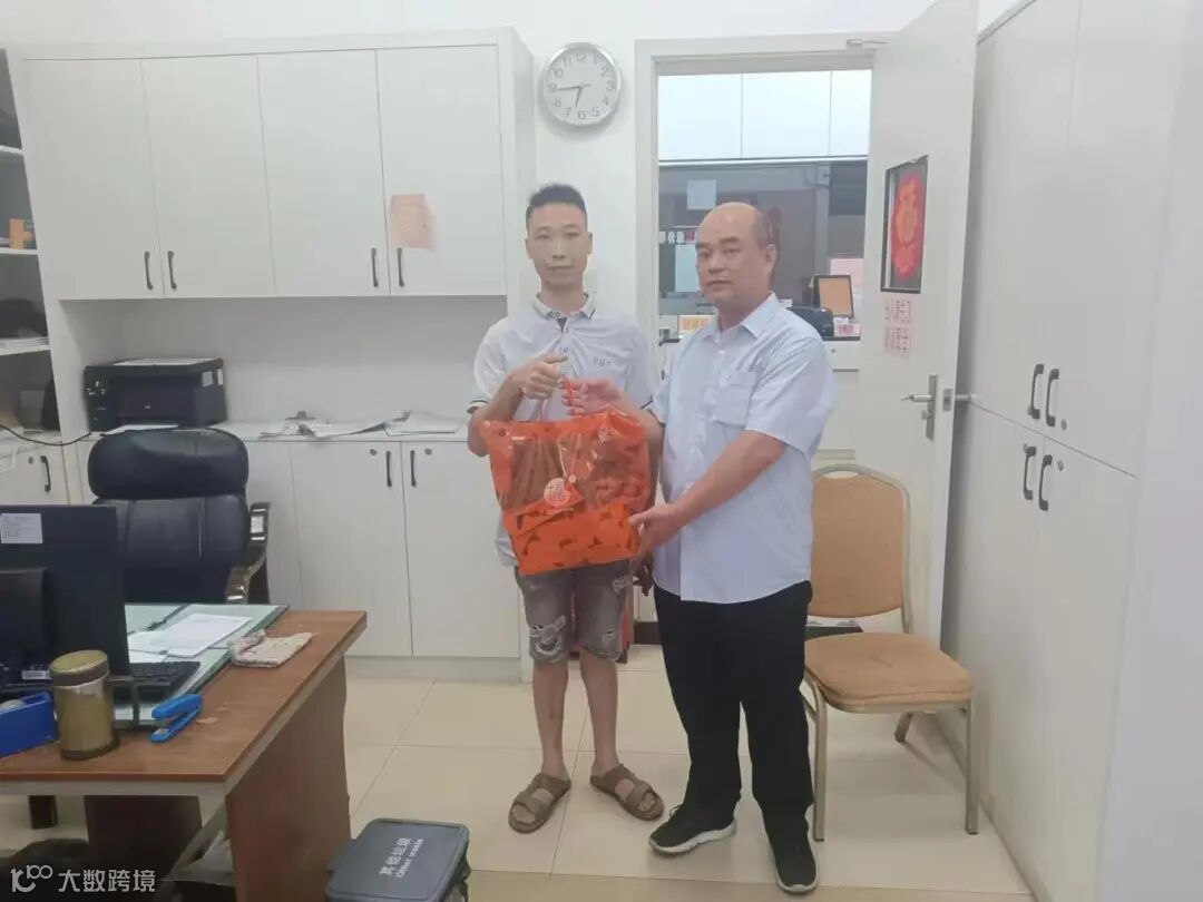 水口客运站徐剑勇在工作期间喜获“大头虾”旅客遗忘在候车室的“大礼包”,为了让这份“大礼包”物归原主,徐剑勇认真复核班车信息,调取监控,最终成功找到物主。经过多方协调,站场工作人员将此份“大礼包”交还到其家人手中。