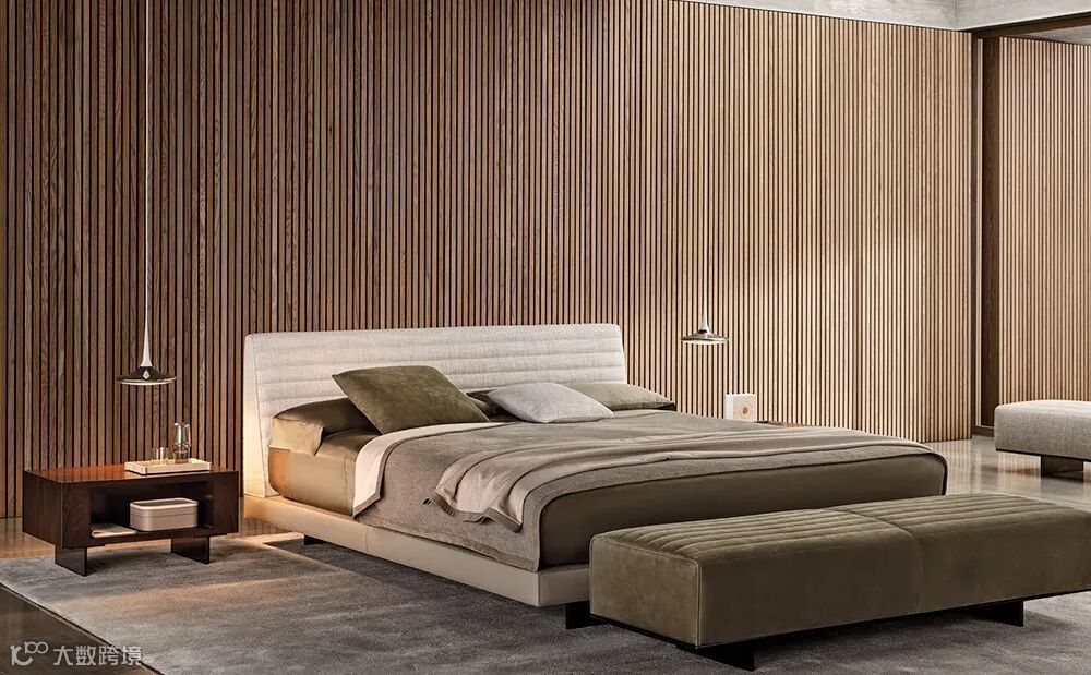 Roger定制剪裁的覆面均带有Minotti的品牌印记,长水平接缝显而易见,Roger系列的理念也定义了床的设计,在床头板的设计效果与时装美学,都体现了设计思维的行云流水和深刻哲学。