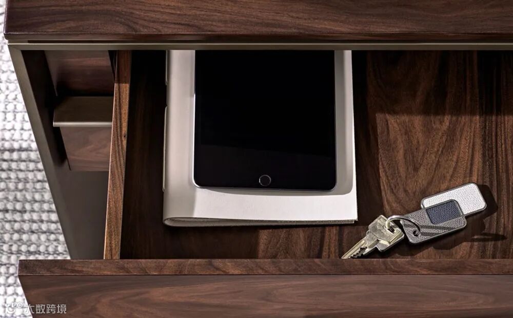 Superquadra系列提供了桌子、储物柜、长凳、咖啡桌等作品,选用Dark Brown染色的Santos花梨木,通过纯粹的几何设计造型,臻选的材质组合,在天然木材、理石、皮革、金属和室内装潢之间,形成了别具风韵的高级感。