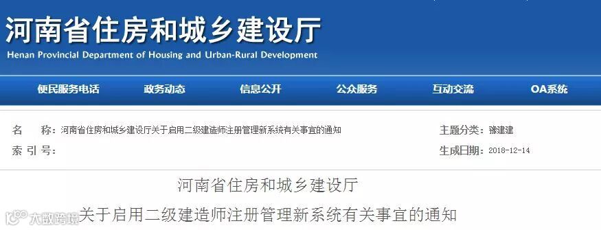 为确保新、旧系统平稳过渡,决定自2018年12月17日零时起,各省辖市、省直管县(市)、林州市住房城乡建设主管部门不再受理二级建造师注册业务。