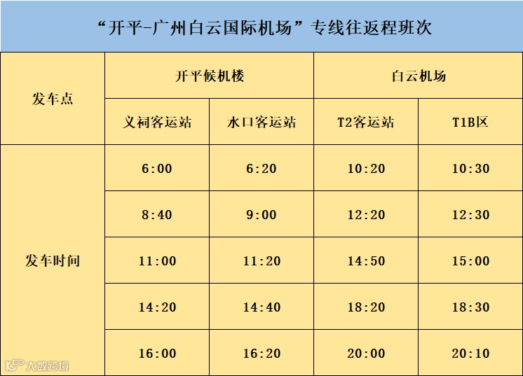 “开平至广州白云机场”专线