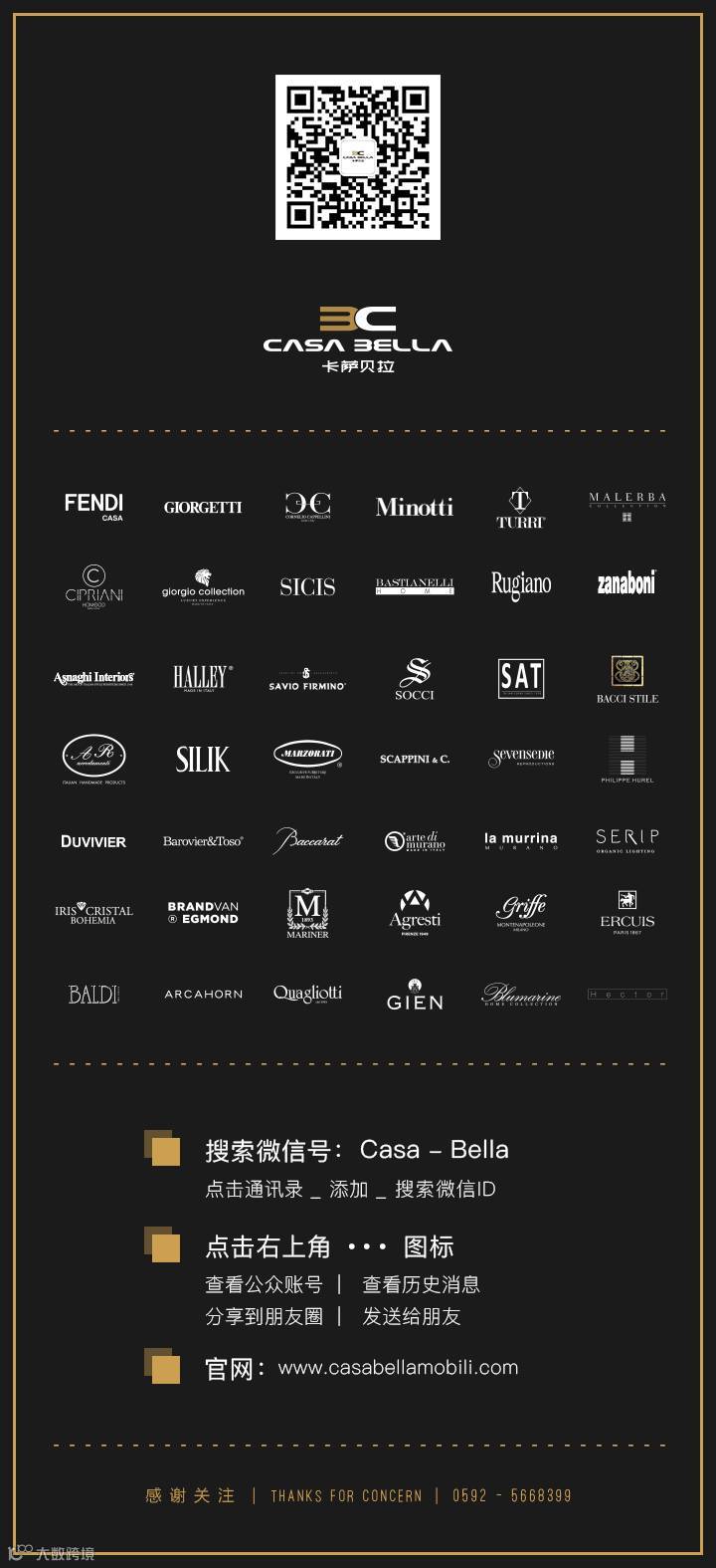 轻奢华,新时尚。意大利国际家居集团CIAC旗下品牌:Cipriani Homood 正式进驻卡萨贝拉,Cipriani Homood 以其精良的制作工艺及品质著称,散发着设计大都市与生俱来的时尚气质,简单的线条勾勒和温和的颜色搭配,却诉说着轻奢时代最值得思考和享受的生活方式。
